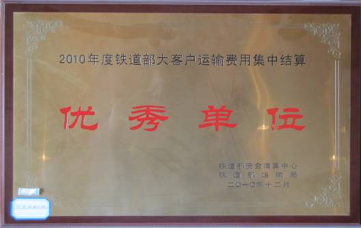 2010年度鐵道部大客戶運輸費用集中結算優(yōu)秀單位