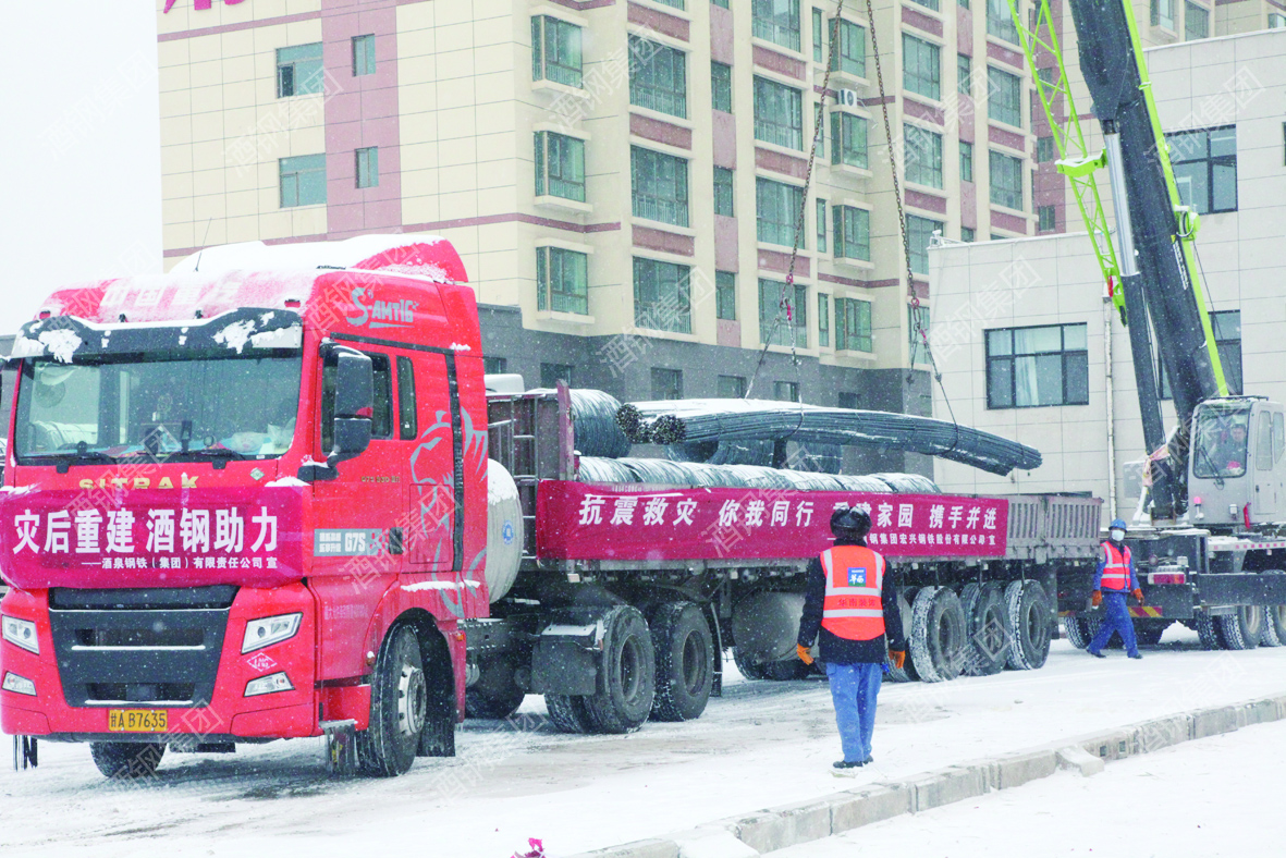 本報訊(記者 張瑾)扛起社會責(zé)任,踐行國企擔(dān)當(dāng)。2月23日,酒鋼第一批共計350噸鋼材送達積石山地震災(zāi)區(qū),為災(zāi)后重建工作提供了堅強保障,助力災(zāi)區(qū)人民重建美好家園。